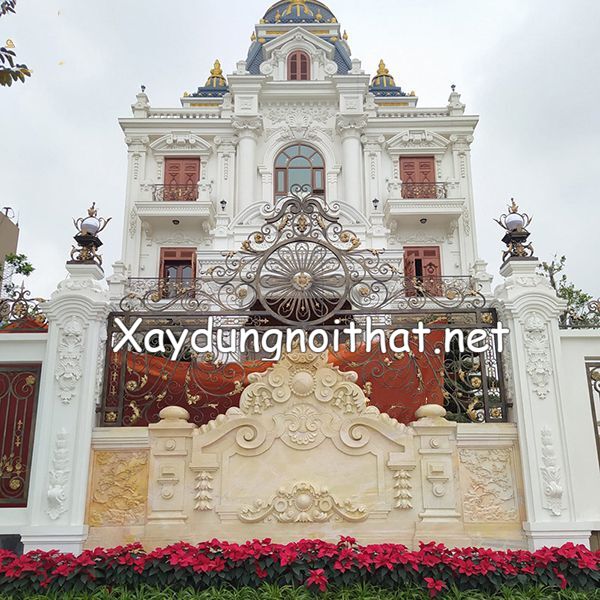Một căn biệt thự tân cổ điển thường chọn hàng rào hoa văn mạ đồng, chi phí trung bình khoảng 2.800.000 VNĐ/m², nhưng giá trị thẩm mỹ mang lại vượt xa chi phí bỏ ra.