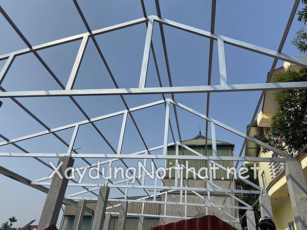 Khung thép hộp mạ kẽm đạt chuẩn: Toàn bộ hệ thống khung kèo được tính toán tải trọng kỹ lưỡng để chịu được sức gió bão cấp 10 – 12. Đặc biệt, kết cấu này sẵn sàng để Quý khách tích hợp lắp đặt hệ thống điện năng lượng mặt trời áp mái trong tương lai mà không cần gia cố thêm.